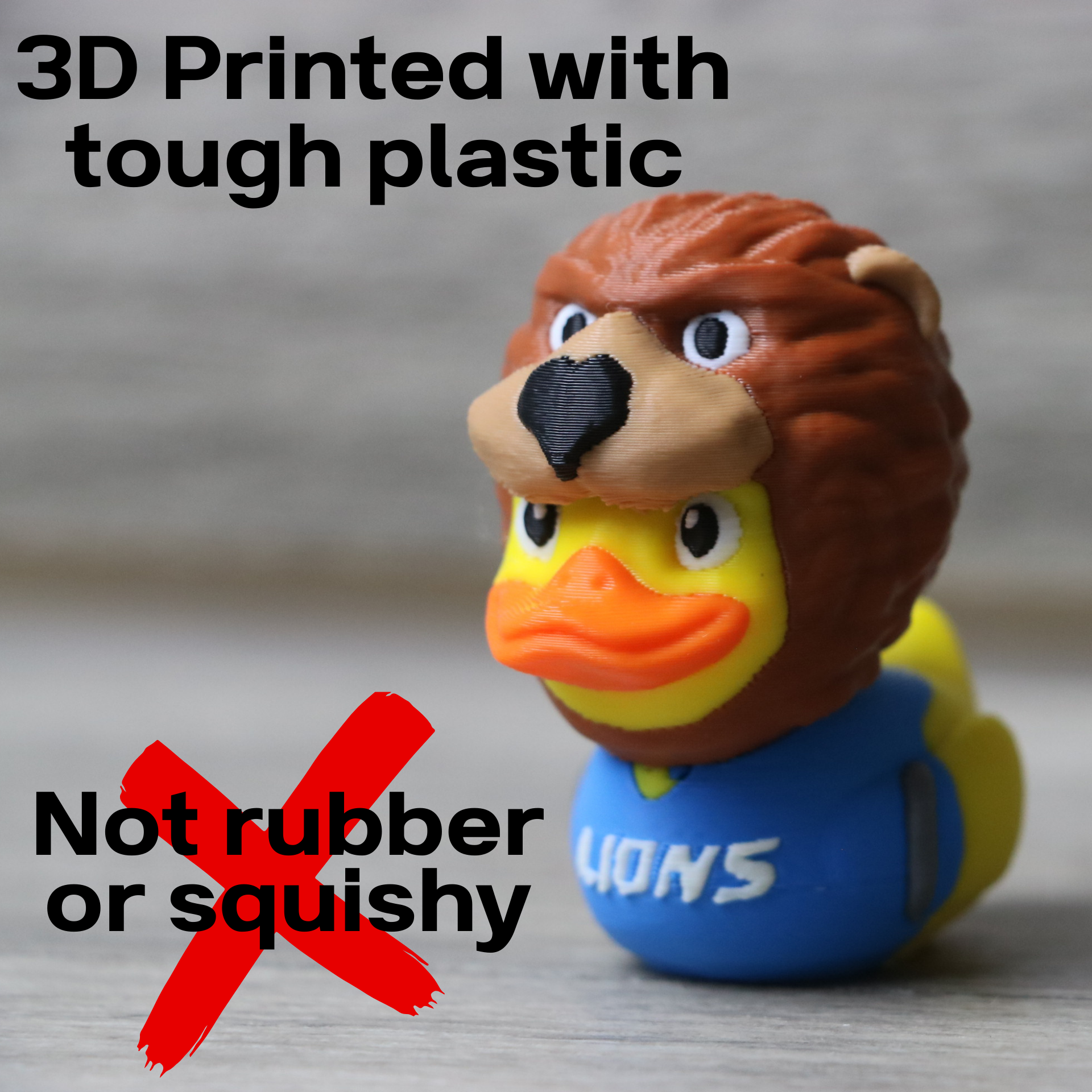 Roar louder this football season with the ultimate fan collectible: a 3D printed duck wearing a full Detroit Lions mascot costume! Whether you're a lifelong Lions fan or shopping for someone who lives for game day, this duck is a hilarious, high-quality tribute to your favorite team.